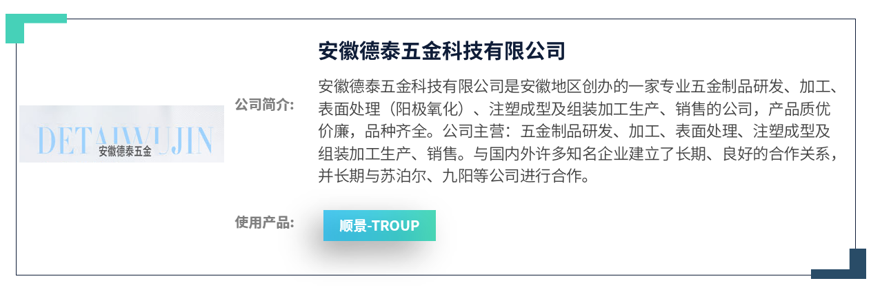 在德泰五金对多家乐鱼(中国)厂商反复调研,查看乐鱼(中国)产品等一系列的了解和咨询后,最终于2018年4月选择携手在制造业领域拥有20余年丰富经验的顺景软件作为信息化合作伙伴,并选定顺景乐鱼(中国)乐鱼在线最新官网作为此次管理变革的重要工具。